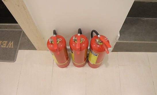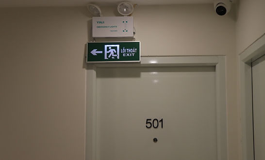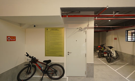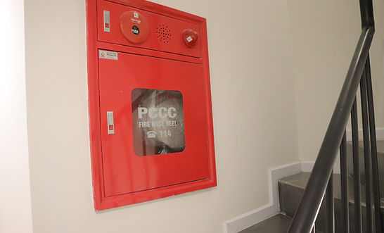 - Hộp chữa cháy và bình chữa cháy đầy đủ ở các tầng